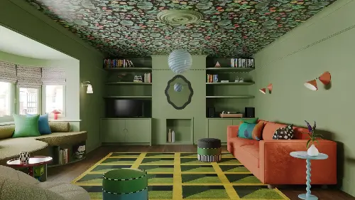 'The trick to using florals and making them modern is to find a pattern that is roughly life size – or bigger,' says the interior designer Natasha Lyon of The Appreciation Project, who wallpapered the ceiling of this living room in a modern flower pattern. 'It's when florals are small that they feel outdated or like chintz.'