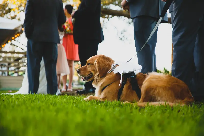 "Service dogs are trained to be calm and unobtrusive, so they rarely disrupt photos or ceremonies. Including them honors the important role they play in the handler's life."