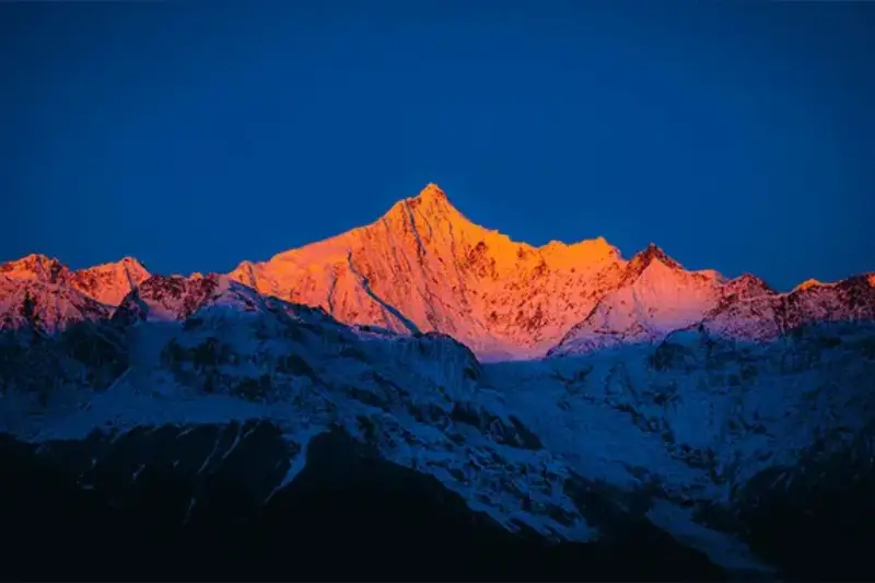 Mount Kailash, one of the most sacred mountains in Tibetan Buddhism, not only attracts religious followers but is also an exciting destination for those who love the snowy mountains in China. Considered a place where nature, history and beliefs intersect, Kailash has snow-capped peaks all year round, creating a mysterious and breathtaking beauty. Every morning, the sunlight shines on the mountain peaks, making them shine like precious gems in the sky, bringing a sense of purity and peace. This is definitely one of the mountains worth exploring for those who are passionate about the sacredness and wild beauty of the snowy mountains in China.
